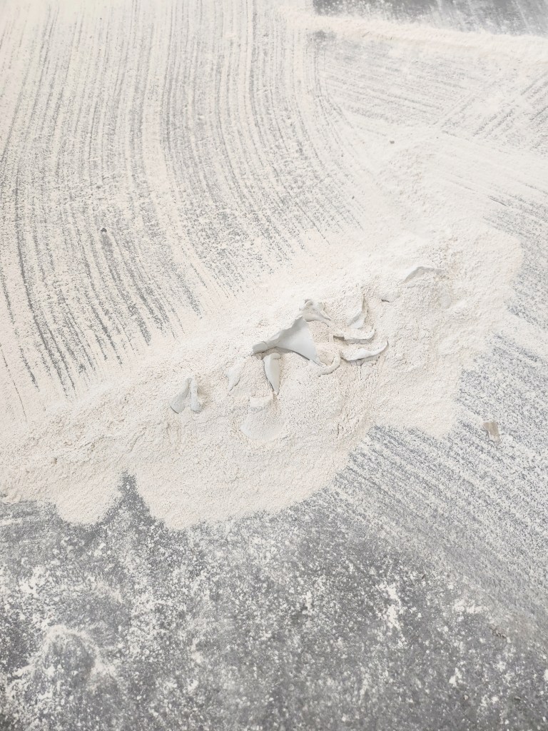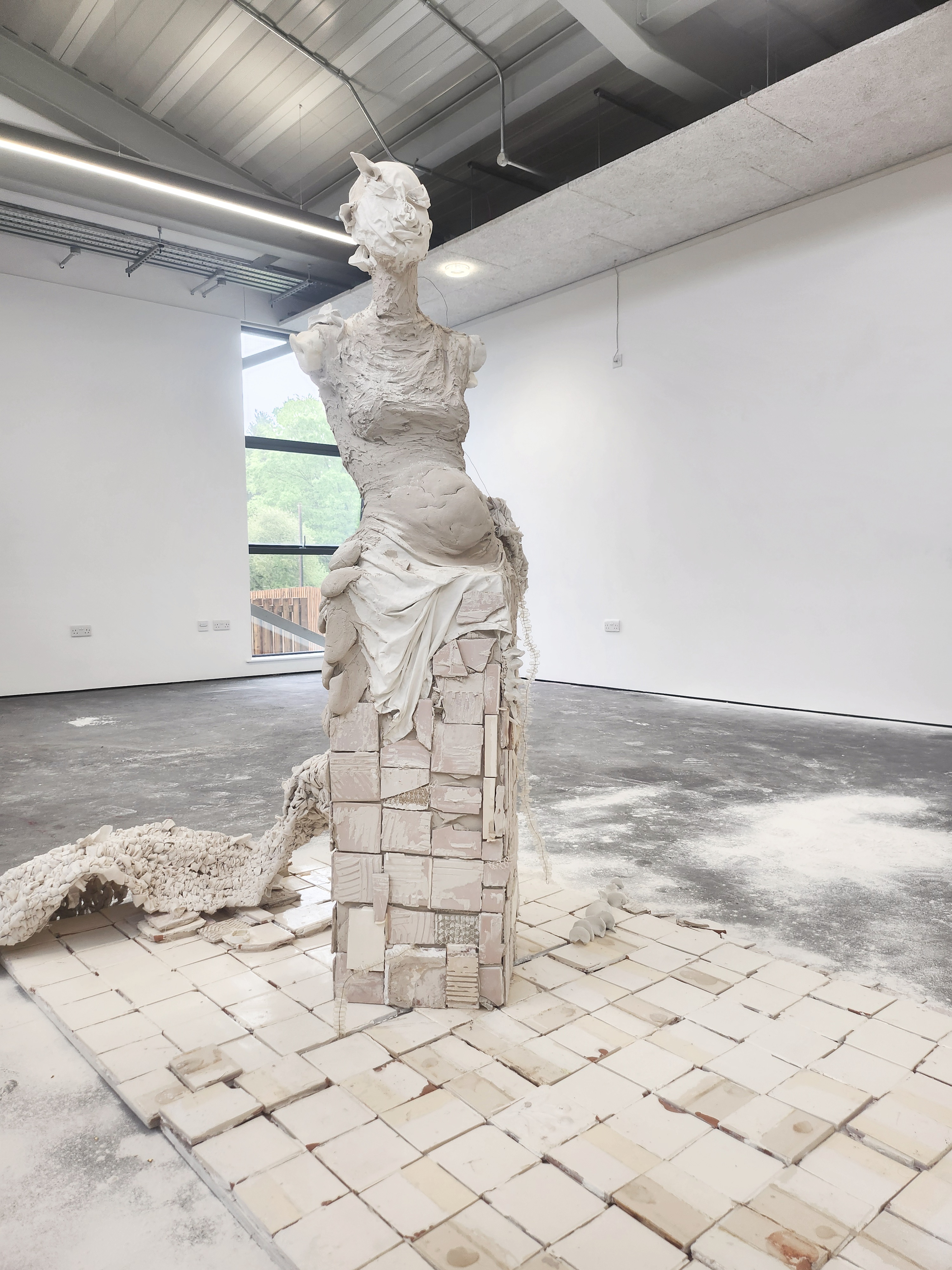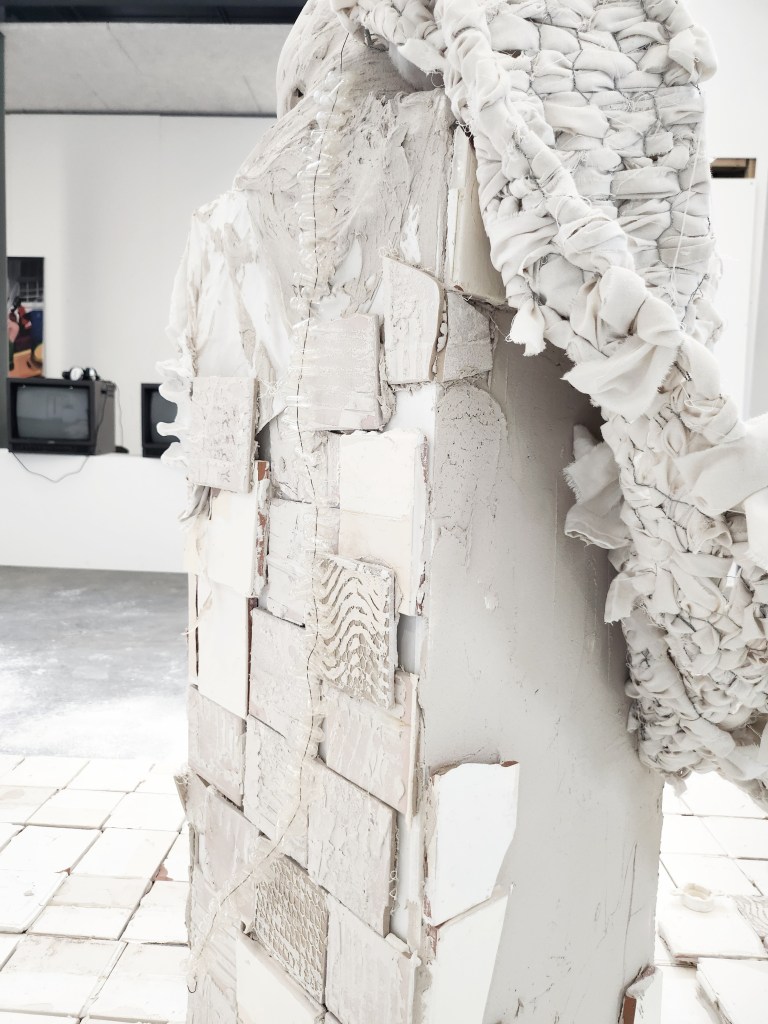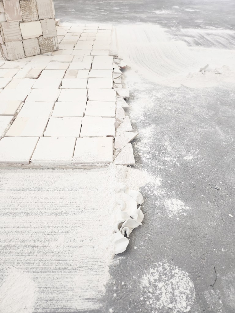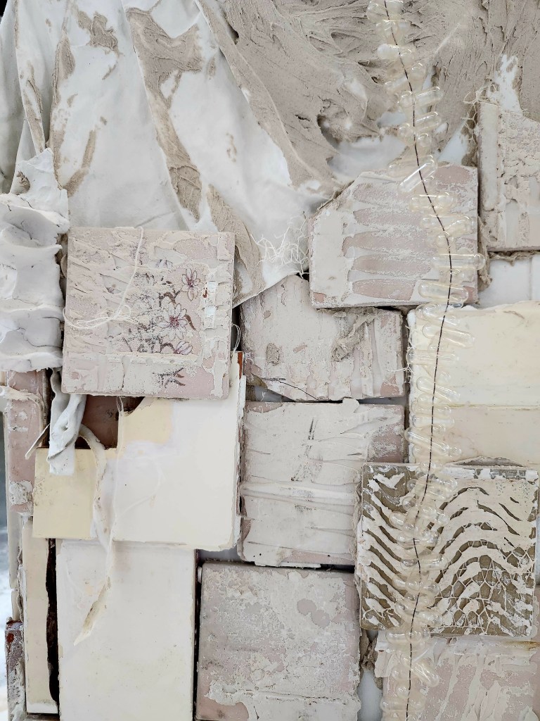 Reclaimed Tiles, Powder Fixative, Wire, Plastic, Textile, Clay, Bovine hide, Pig snouts.