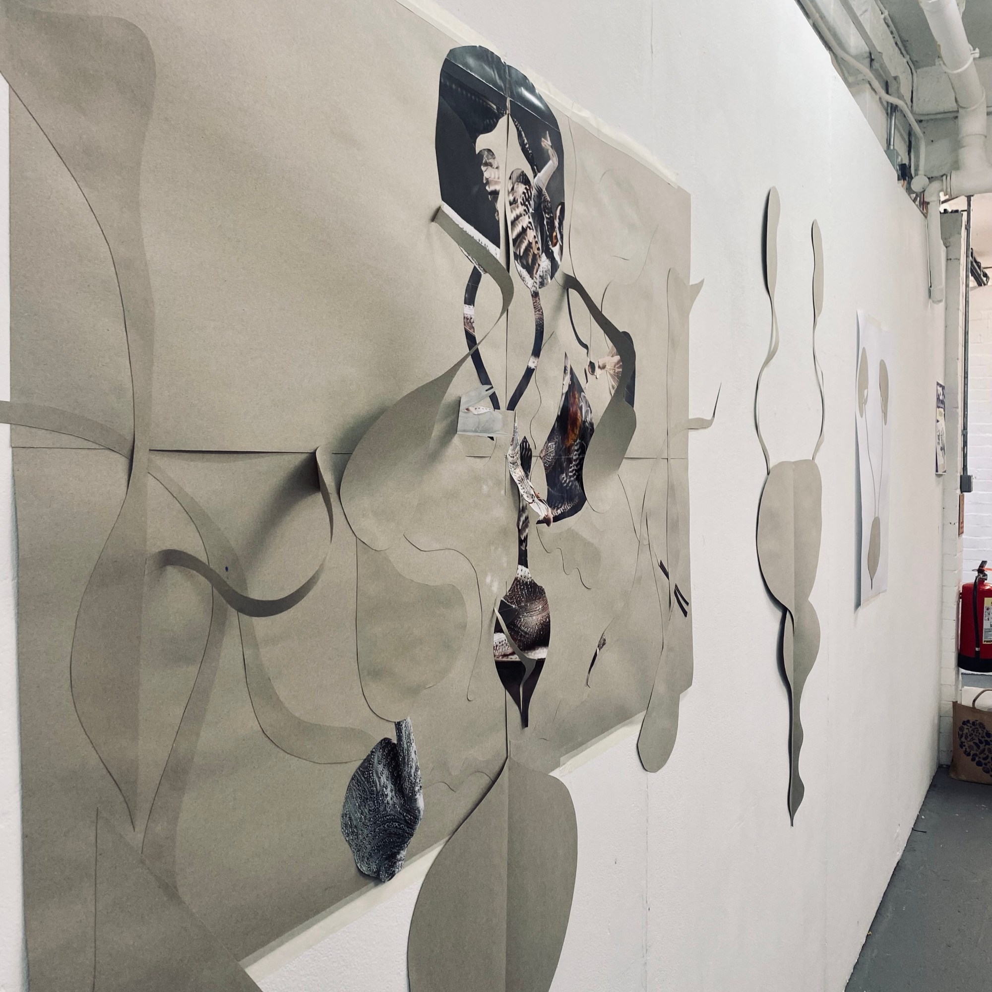 Studio practice thus far has consisted of wall mounted collage work based on the human internal anatomy, specifically the bladder & kidneys following my research into Botulism.