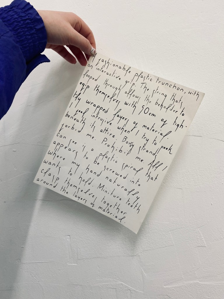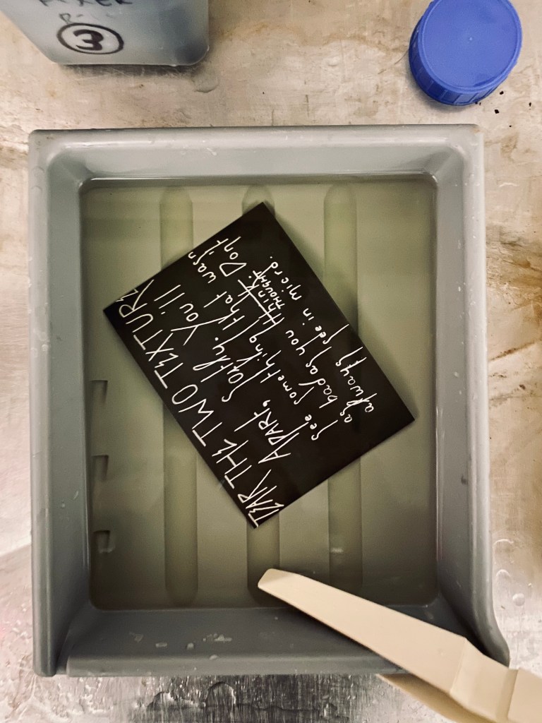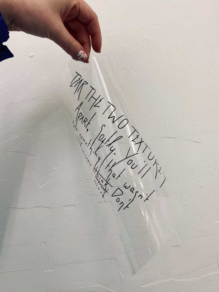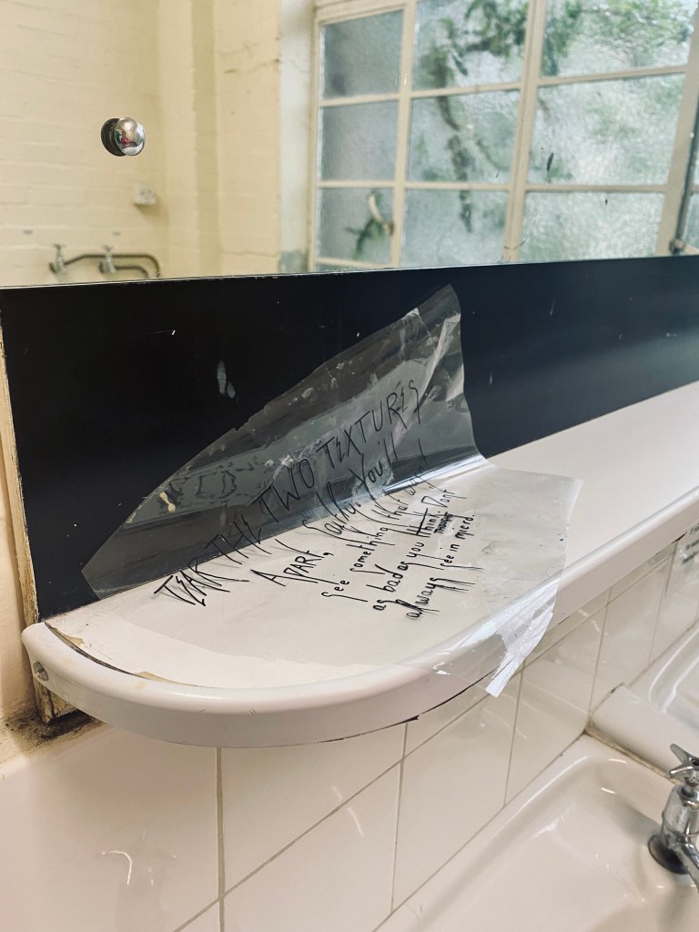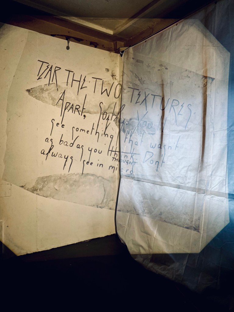I have since transferred the words onto the surfaces I believe they perform best on. The varied positions alter the way in which the words can be understood.