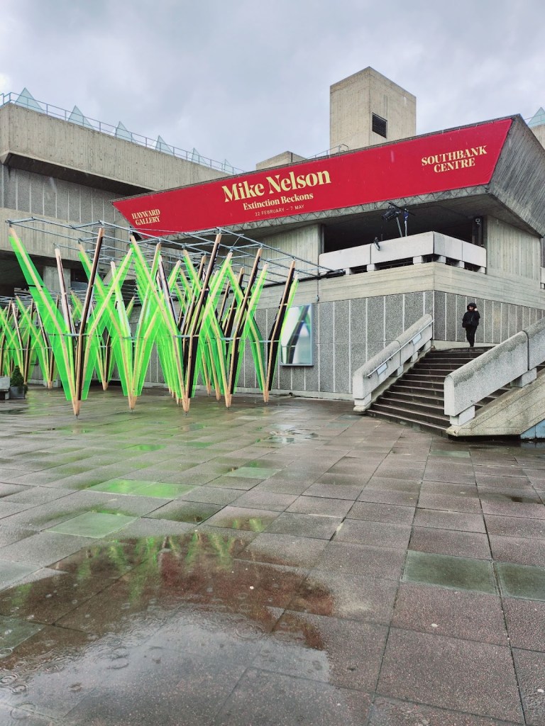 Nelson’s amalgamation of assembled experiences fluctuate in the uncanny valley that is contemporary installation. We relearn sensory integration basics as we navigate the body parts of Nelson’s augmented reality here at the Hayward gallery. Sceptical familiarities are spoon fed to us in this seven course tasting menu that is Extinction Beckons. Once again, Nelson has stirred the pot of contemporary installation, leaving the bitter sweet taste of metadistopia in our mouths.