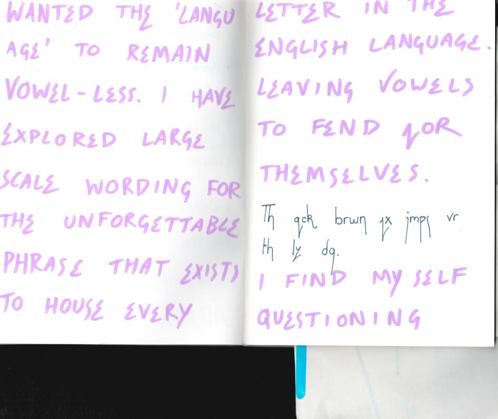 Exchange is necessary in order to communicate. But what is the worth of a stolen vowel if it can no longer share or express? Soon it becomes paraphernalia of language, and like smoke words are lost.