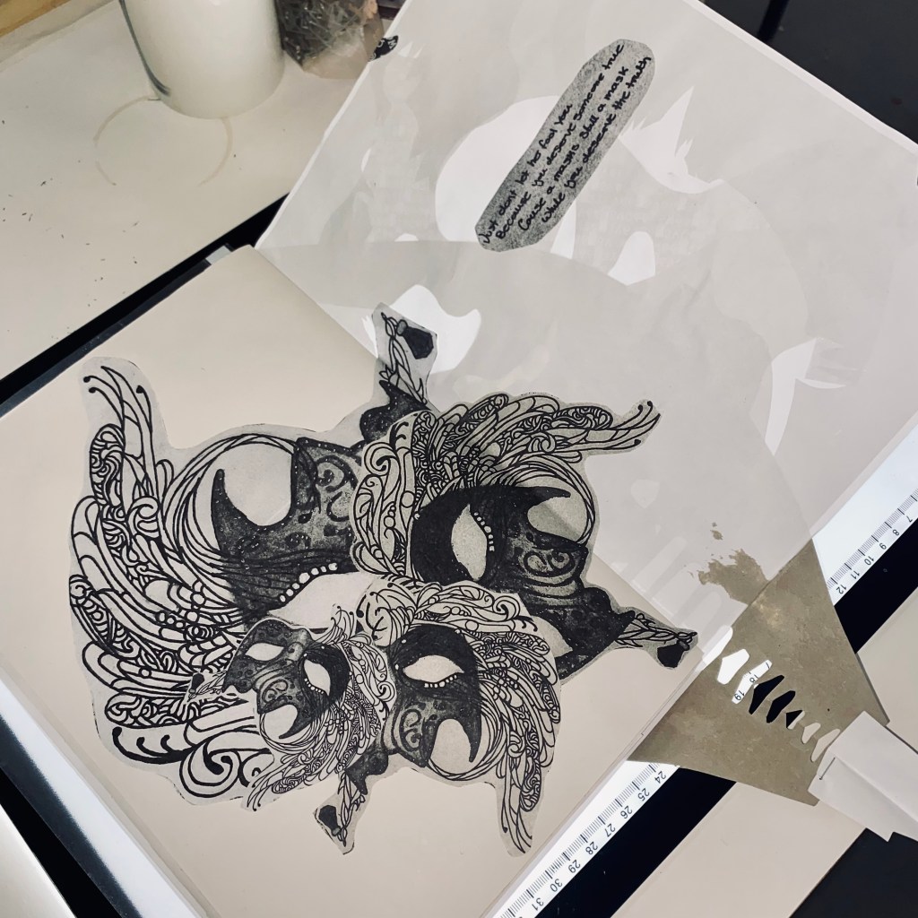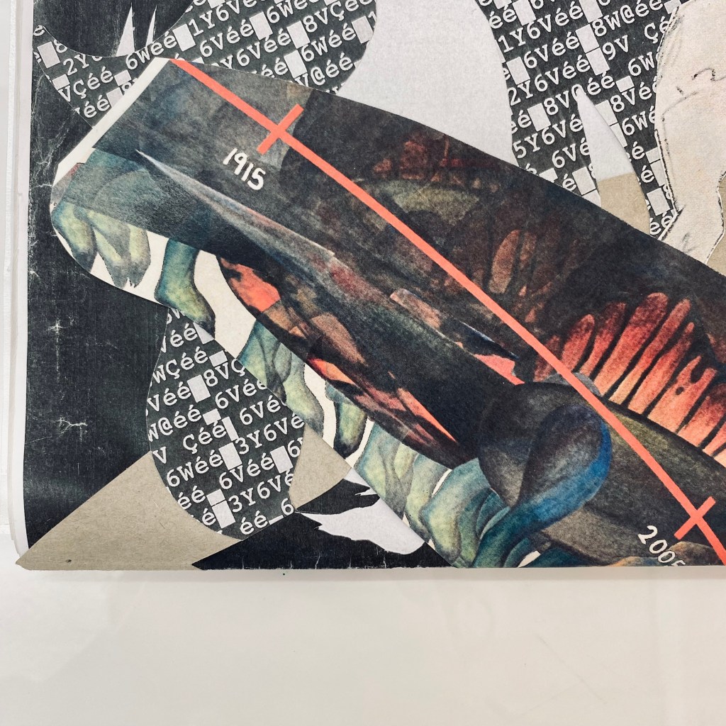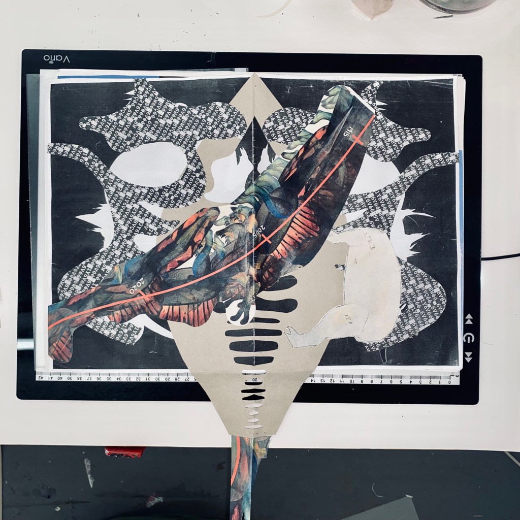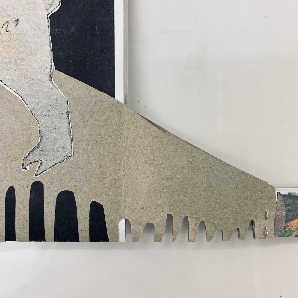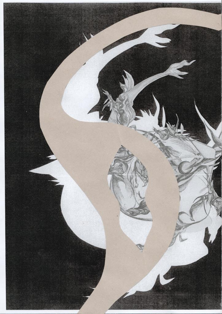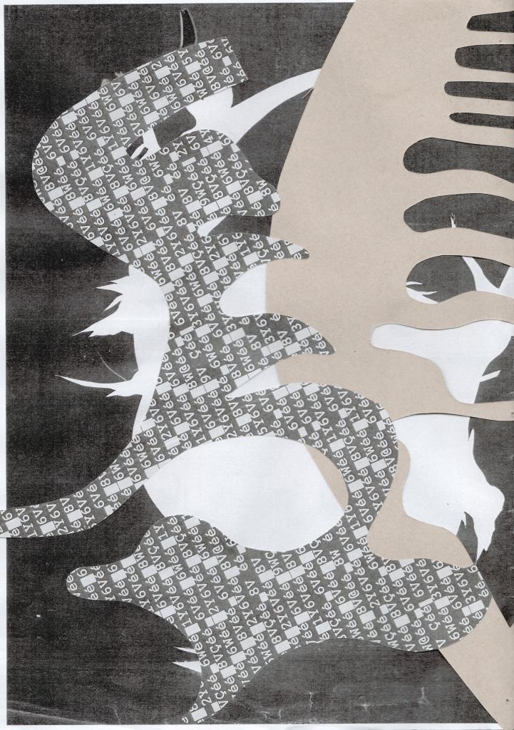 Excogitating the idea of individual engagement, our group set out to create an exhibition book that allowed its reader to form its content – to contribute. Our outcome was something that I will describe as a compilation of collaged material. Some of which was loose in the centre of the book for the reader to determine its position on the pages. Saying this, we hand drew outlines of Abigail T’s computer rendered hands as a suggestion. An attempt to lead the reader to follow our lead; this could either be observed or ignored. I will liken this notion of placement to that of a childrens’ sticker book. Matching the positive spaces to their negative counterparts. Perhaps it is obvious where the shapes are meant to fit. But staying in line isn’t always fun…