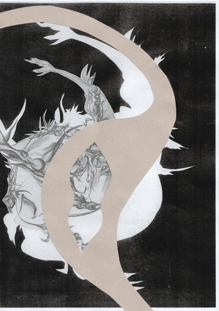 BoNT on a plate knew no bounds and did not conform to the qualities necessary within the confines a tangible publication. With no definite start or end, my sculptural installation lacked spacial awareness. Why would it know its place? So, when considering the composition for this exhibitions book, the shapes needed to be contained. By using cut-outs of the negative space left over from the paper installation, a doubling affect was achieved within the mock-up. I also incorporated salvaged cut-outs of the real thing that had since been disassembled. The shapes you see in the book appear reluctantly repositioned. If the forms outgrew the page, they spilled over to the next with assertion. Determining the layout of the following page; the previous and current state of BoNT came to co-exist. Like something that has mutated in order to survive. What once sprawled out before you, embodying its individual freedom was now ambivalent to the forms you could hold in your hands. It has re-spawned. I want these opposing formats to be clear. The fluidity and connection between the external and internal materialisation of BoNT should be palpable. If the installation was something that continued to outgrow its space, the publication needed to be confined. The pages were an A4 vessel for examination.