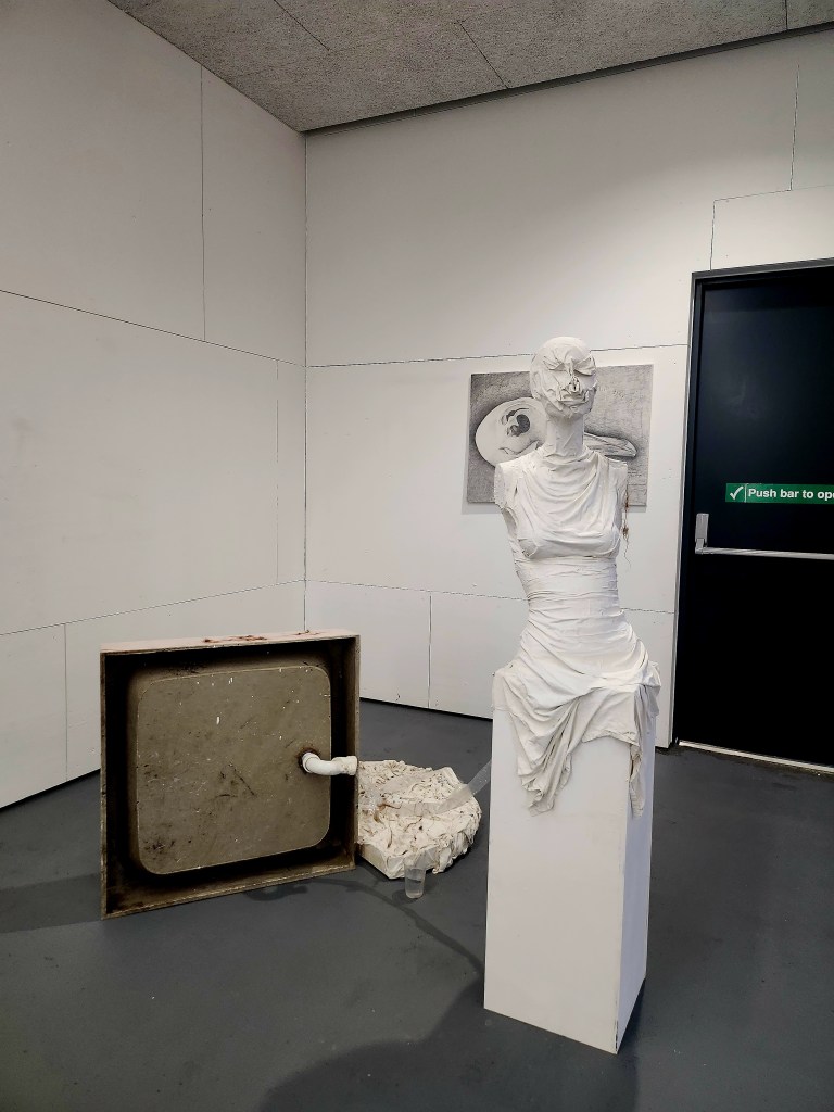 Sculpted Sentients, Details, Plastic, Concrete, Clay, Synthetic Materials, Human Hair, Water, 2023.